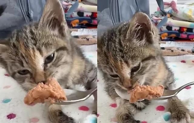 糟糕的身体状态,让志愿者不得不用勺子给它喂食。