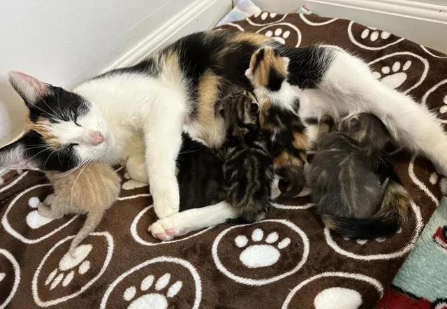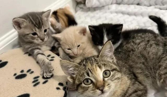萨弗伦在上个月底刚刚生下了一窝小猫,在志愿者的帮助下,五只小猫被照顾得非常好。