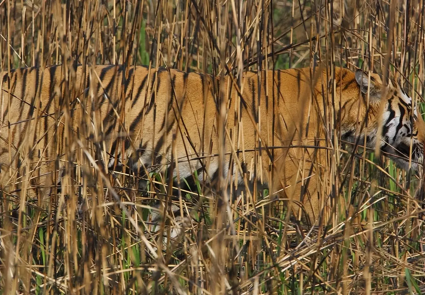 之所以说是“可能”,是因为老虎的伪装,既和它的肤色有关,也和它的条纹有关,而白虎的条纹并不受影响。