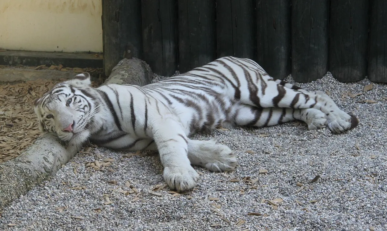 2004年,在西班牙的一个动物园中,两只正常颜色的孟加拉虎生出了一只蓝眼睛、没有条纹的白色老虎幼崽。